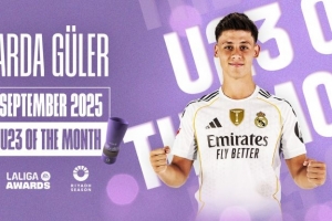 這是居勒爾第二次獲獎,他曾在上賽季12月份獲獎。這次評選他擊敗了費(fèi)爾明、哈維-格拉、卡洛斯-阿爾瓦雷斯、馬蒂姆-內(nèi)托。