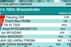體育資訊9月30日訊 亞洲游泳錦標(biāo)賽男子100米蛙泳決賽,覃海洋以59.07創(chuàng)賽會紀(jì)錄的成績奪冠。