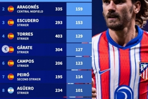 體育資訊10月1日訊 在本輪歐冠馬競(jìng)5-1擊敗法蘭克福的比賽中,格列茲曼打進(jìn)個(gè)人馬競(jìng)生涯第200球。德轉(zhuǎn)也盤(pán)點(diǎn)了馬競(jìng)隊(duì)史射手榜,其中格列茲曼居首,具體如下: