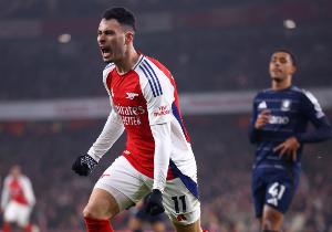 體育資訊10月2日訊 在本輪歐冠阿森納對陣奧林匹亞科斯的比賽,馬丁內(nèi)利率先進球。
