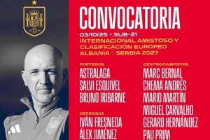 體育資訊10月3日訊 西班牙足協(xié)公布U21國(guó)家隊(duì)名單,西班牙U21將在10月份對(duì)陣芬蘭U21和挪威U21。