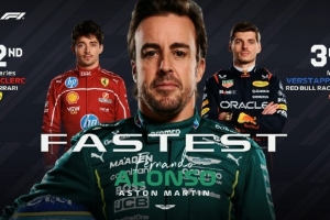 新加坡站一練,44歲阿隆索跑出1:31.116的成績,賽季首次登頂。勒克萊爾、維斯塔潘和漢密爾頓排在二到四位,兩輛邁凱倫第五第六。哈賈爾第七,塞恩斯第八,角田裕毅第九,奧康第十。