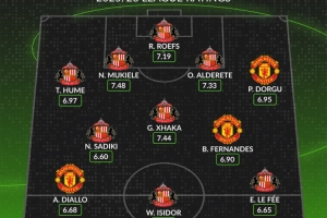 中場:薩迪基(桑德蘭)、扎卡(桑德蘭)、B費(fèi)(曼聯(lián))