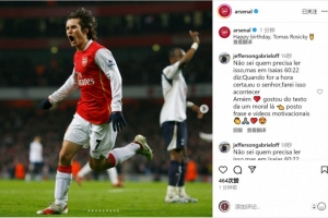 阿森納官方社媒曬出羅西基效力球隊(duì)時(shí)期的照片,配文:“生日快樂(lè),羅西基。”