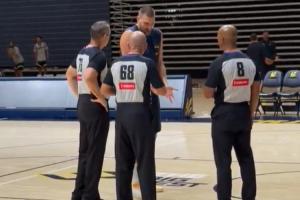 在訓練賽結(jié)束后,尼科拉-約基奇花了至少10分鐘與裁判們進行了交流和示范教學。