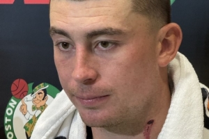 當(dāng)記者問及他頸部有血痕時,普理查德表示:“訓(xùn)練營里的對抗像打仗一樣。”