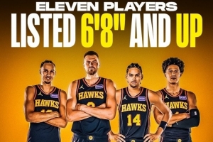 算上雙向合同球員,老鷹全隊共有13名球員超過6尺8寸(約2.03米)!