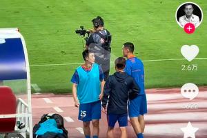 6月30日,中超第16輪,泰山2-2戰(zhàn)平河南隊(duì),比賽補(bǔ)時(shí)階段,替補(bǔ)出場(chǎng)僅2分鐘的彭欣力被紅牌罰下。該博主將一段泰山工作人員打電話后與鄭錚和彭欣力交流的片段,和彭欣力替補(bǔ)出場(chǎng)的片段剪輯在一起。