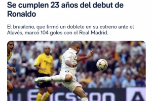 2002年10月6日,在伯納烏對陣阿拉維斯的比賽中,羅納爾多替補登場僅一分鐘便取得進球,并最終以梅開二度的表現(xiàn)開啟了他的皇馬生涯。