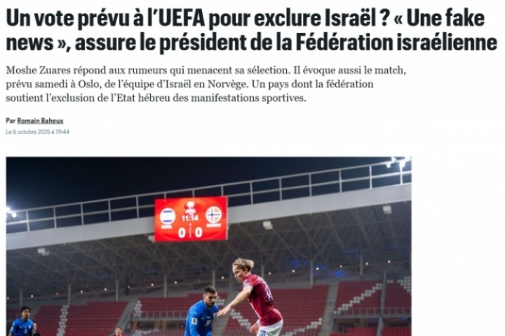 體育資訊10月07日訊 北京時間10月12日星期日,世預賽歐洲區(qū)小組賽I組第7輪,挪威坐鎮(zhèn)主場迎戰(zhàn)以色列。在這場比賽之前,針對有計劃在歐足聯(lián)進行投票以排除以色列的報道,法國媒體巴黎人報表示,以色列足協(xié)主席做出了回應稱這是假新聞。