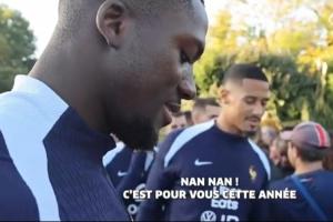 【開個玩笑??】法國隊為球迷簽名時,科納特向薩利巴展示了一張他舉起英超冠軍獎杯的照片,并說道:“這是你嗎?” ??