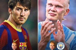 梅西在瓜迪奧拉執(zhí)教下,在西甲聯(lián)賽136場(chǎng)138球55助;哈蘭德在瓜帥執(zhí)教下,104場(chǎng)英超94球17助。