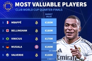 世俱杯8強(qiáng)球員身價(jià)榜: