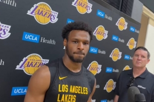 體育資訊7月3日訊 今日,湖人后衛(wèi)布朗尼-詹姆斯在訓(xùn)練后接受了采訪。