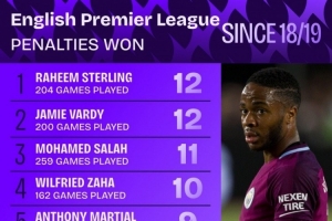 體育資訊10月12日訊 Squawka統(tǒng)計(jì)了2018-2019賽季以來(lái)球員在英超造點(diǎn)的次數(shù),并列出榜單,斯特林、瓦爾迪12次居首,薩拉赫11次第三。