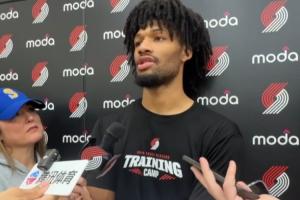 開拓者今日隊內(nèi)訓練,訓練后夏普接受采訪談到了楊瀚森,小吧整理了部分采訪內(nèi)容。
