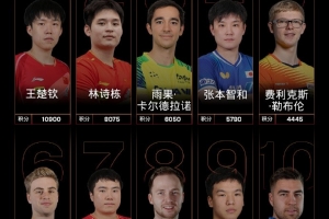 男子單打,國乒球員王楚欽、林詩棟位列前二,梁靖崑位列第七,向鵬位列第九。戶上隼輔排名上升1個名次位列第19;張禹珍排名上升1個名次位列第20。