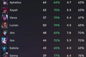 體育資訊10月14日訊 數(shù)據(jù)網(wǎng)站統(tǒng)計(jì)Gumayusi生涯英雄:厄斐琉斯場(chǎng)次最多,卡莎勝率僅36%。