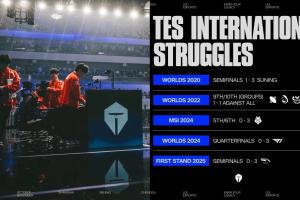 體育資訊10月15日訊?LOL英文流列出TES國際賽慘淡成績,并配文“他們能否打破詛咒?”