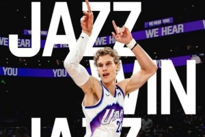 賽后爵士官方發(fā)布贏球海報,封面為馬爾卡寧,姿勢非常妖嬈。球隊另一內線努爾基奇則在社媒上轉發(fā)了這個海報。