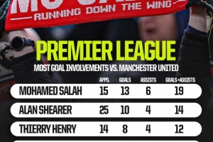 體育資訊10月17日訊 北京時(shí)間10月19日晚上,利物浦將在英超第8輪比賽中主場(chǎng)對(duì)陣曼聯(lián),Squawka統(tǒng)計(jì)了球員在對(duì)陣曼聯(lián)的英超比賽中的參與進(jìn)球數(shù)量,薩拉赫19球居首。