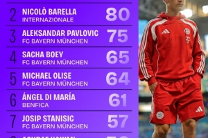 3、帕夫洛維奇(拜仁)75次