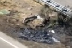 根據(jù)事故現(xiàn)場航拍視頻可以看到,車輛周圍土層已經(jīng)被燒焦,地上只剩蘭博基尼的部分外殼殘骸。