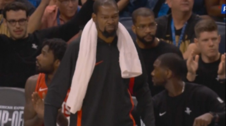 GIF-申京神奇打板中投命中&造成犯規(guī) 全隊起立杜蘭特撇嘴做鬼臉