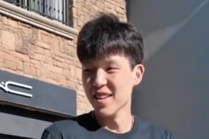 體育資訊7月4日訊 跟隨楊瀚森一同赴美的團(tuán)隊(duì)人員、媒體人@程博_Bo曬出楊瀚森的近照。