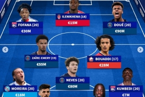 體育資訊7月5日訊 《轉(zhuǎn)會市場》統(tǒng)計了法甲U21球員最貴陣容,巴黎4將在列。
