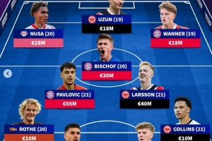 體育資訊7月5日訊 《轉會市場》統(tǒng)計了德甲U21球員身價最貴陣容,拜仁4將、法蘭克福3人在列。