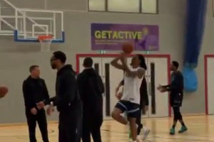 真夠遠的!阿倫弧頂接球加長兩步直接命中三分球