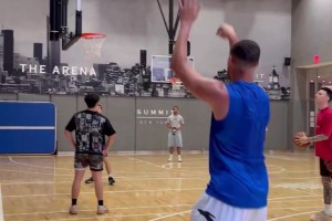 越戰(zhàn)越勇!威少底角接球 迎著防守果斷開炮三分命中