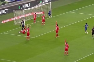 桑切斯開(kāi)門(mén)球時(shí)傳給查洛巴,查洛巴用手按住,伯恩利球員抗議手球