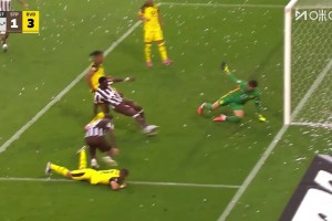 桑切斯開門球時(shí)傳給查洛巴,查洛巴用手按住,伯恩利球員抗議手球